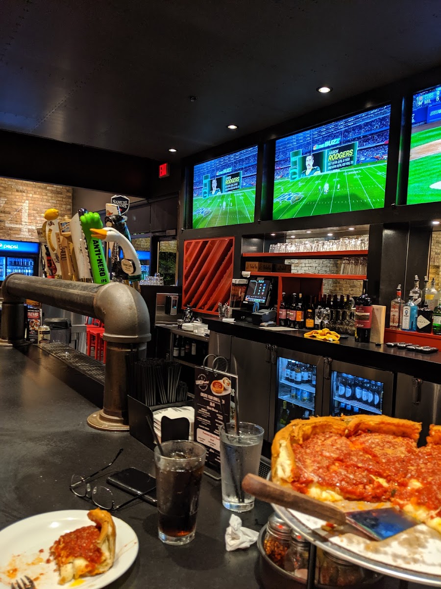 If you are looking for a delicious pizza spot that's good for casual, business, dates, etc. this is it. The food is great, service it great and the atmosphere is great. Ordered the Meat, Meat & More Meat Deep Dish Pizza and it was delicious! We also ordered the sampler appetizer and it was good as well. Went back and ordered the BBQ Chicken Deep Dish... Was delicious! Hit it out of the park again